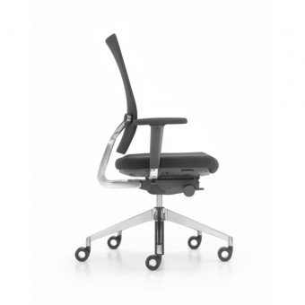 Die Synchronmechanik sorgt für gesundes, bewegtes Sitzen und lässt sich mit Hilfe einer seitlich bedienbaren Federkraftverstellung komfortabel und schnell an das Gewicht des Benutzers anpassen. Die Zweigelenk-Kinematik verfügt über ein Synchronverhältnis von 1:2,5. Die maximale Rückenlehnenneigung der Mechanik beträgt 25°, effektiv sind es allerdings bis zu 35°, denn die Pendelgelenke der Rückenlehne lassen eine zusätzliche Neigung von 10° zu. Die Synchronmechanik ist in vier Positionen arretierbar. Als Option ist eine Ausführung mit zuschaltbarer Sitzneigung von - 3° erhältlich.