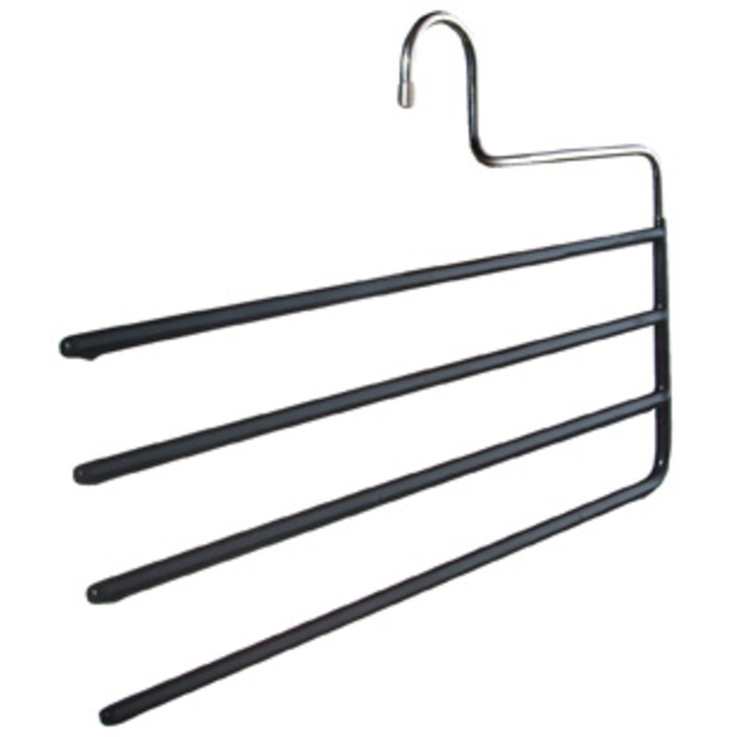 Eine äußerst sparsame Möglichkeit, 4 Hosen gleichzeitig auf einem Kleiderbügel im Schrank zu verstauen.