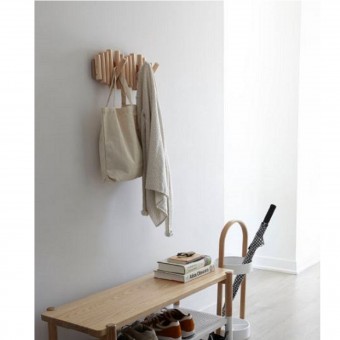 Wenn Picket nicht in Gebrauch ist und seine Haken hochgeklappt sind, sieht diese Garderobenleiste aus wie ein Stück Kunst.