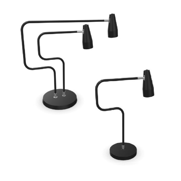 Arbeitsbeleuchtung in einzigartigem Design. Noon sorgt für ein gleichmäßiges Arbeitslicht, ohne zu blenden oder zu starke Kontraste zum Licht beispielsweise einer Deckenlampe oder einer anderen Beleuchtung zu erzeugen. Noon ist als Innendetail konzipiert und passt als Tischlampe genauso gut wie als Nachttischlampe oder als Beleuchtung auf einem Bücherregal. Erhältlich in zwei Modellen, mit einem oder zwei Armen.
