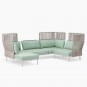 Reva Cocoon ist ein Loungesessel-System für Außenbereiche, das maximale Verwendungsfreiheit garantiert. Es passt sich an und kann auf verschiedene Arten zusammengestellt werden, um extremen Komfort und Personalisierung zu gewährleisten. Gekennzeichnet durch imposante Rückenlehnen aus Edelstahl, mit Überzug aus Flechtarbeit aus witterungsbeständigem Polypropylen, die gleichzeitig imstande ist, ein natürliches Ergebnis zu garantieren. Die Bespannung, die zu 100% in Italien von erfahrenen Handwerkern gefertigt wird, bietet die notwendige Privatsphäre, wobei dieses Einrichtungselement trotzdem luftig bleibt und dank der dichteren Flechtung im unteren Teil und der lockereren Flechtung im oberen Teil das Durchdringen von Licht und Luft gestattet.