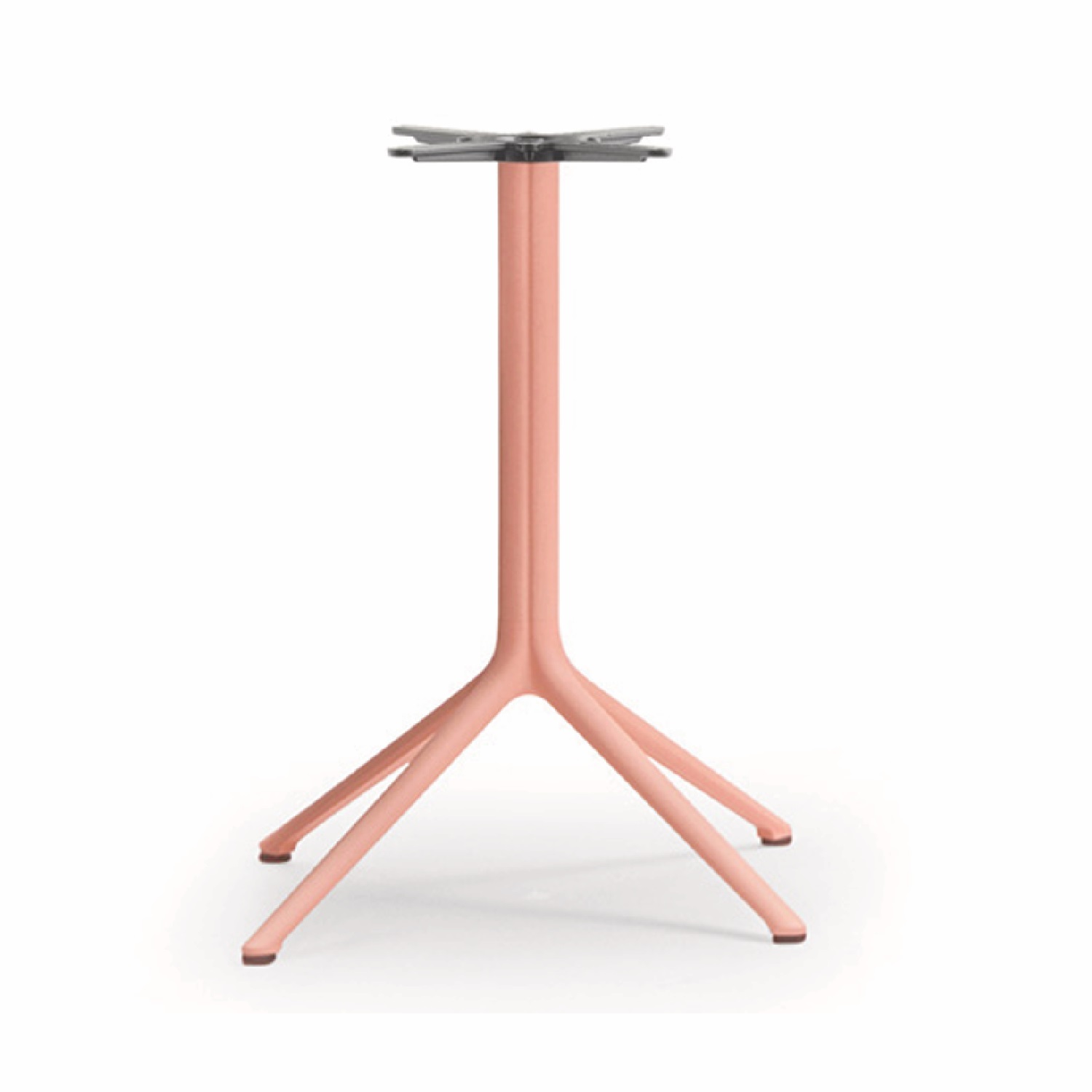 Tischgestell mit Säule aus extrudiertem Aluminium der sich unten in vier Auslegern aus Aluminium-Druckguss auftrennt.