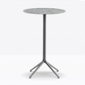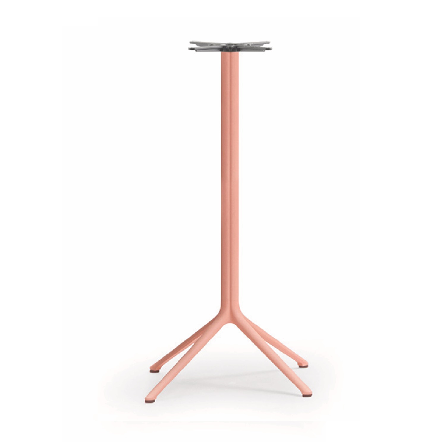 Stehtisch mit Säule aus extrudiertem Aluminium der sich unten in vier Auslegern aus Aluminium-Druckguss auftrennt .