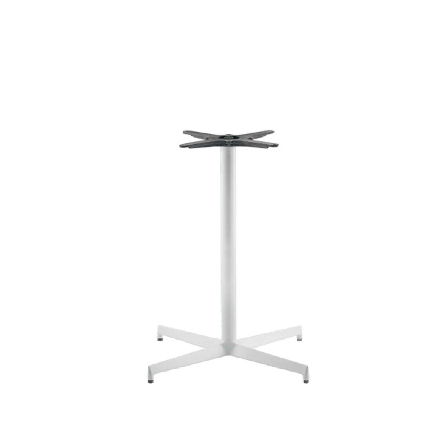 Tisch mit Sockel aus Aluminiumdruckguss und Säule aus Stahl. Tischplatte aus lackiertem Stahl