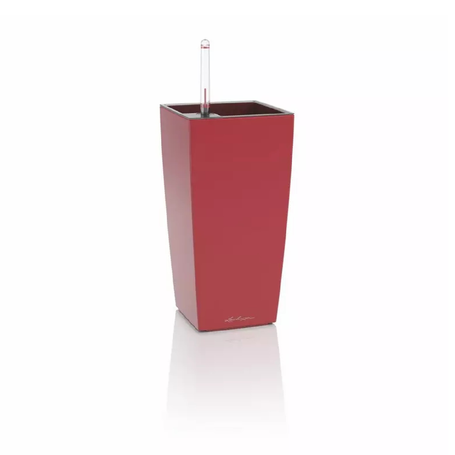 Die kleinen eckigen Gefäße sind in hochglänzender, matter und mit metallic-Oberfläche erhältlich. Dabei passen sie zu jedem Wohnstil. Im Inneren der Gefäße befindet sich das Docht-Bewässerungssystem, welches die Pflanzen stets mit der ausreichender Menge an Wasser versorgt. Am Wasserstandsanzeiger lässt sich der Füllstand des Wasserreservoirs ablesen. Der durchsichtige Pflanzeinsatz ist herausnehmbar und sorgt so für einfachen Wurzelbeschnitt und ermöglicht das Beobachten des Wurzelwachstums.