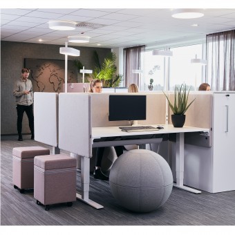 Schallabsorbierender A30 Schreibtisch-Sichtschutz mit Reißverschlussverbindung für optimale, individuelle Arbeitsplätze.