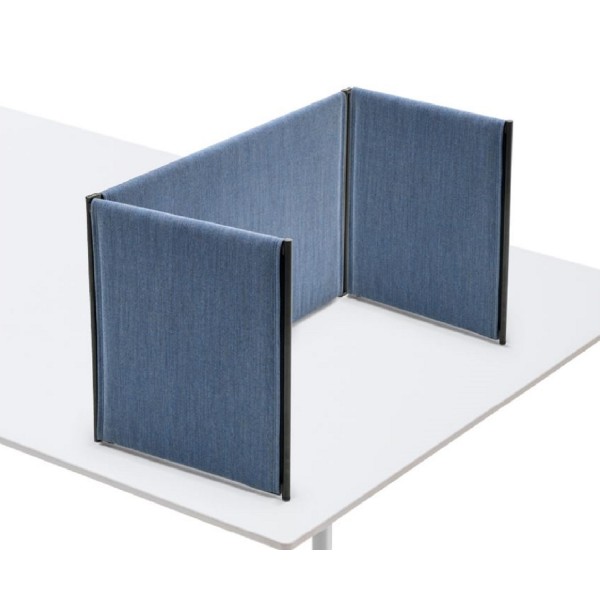 Toa Folding Screen ist eine schallabsorbierende Tischtrennwand, das in der Lage ist, den Raum zu definieren und abzutrennen. Es ist so konzipiert, dass es den Bedürfnissen der Mobilität und Konfigurierbarkeit moderner Arbeitsräume sowie den Anforderungen an die Abstände gerecht wird. Der Stoffbezug über der Metallstruktur ist dank eines Reißverschlusses an der Unterseite abnehmbar und somit leicht zu reinigen und zu warten. Es ist faltbar, leicht und einfach handzuhaben.