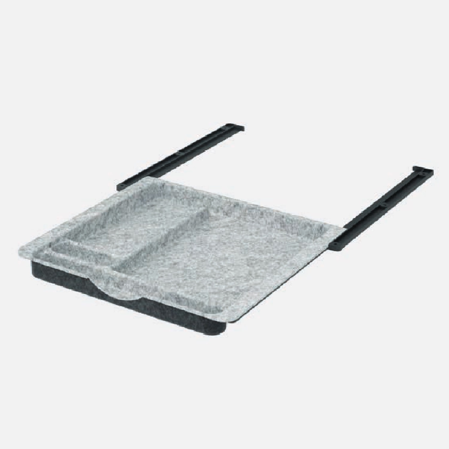 Unterbau-Organizer in Filzoptik, grau-meliert, mit zwei Kunststoffführungen einfach an der Unterseite der Tischplatte anzubringen.