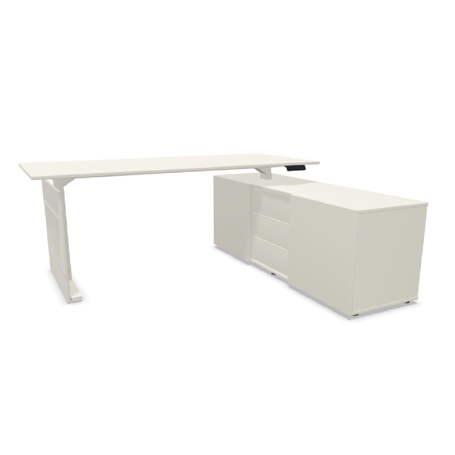 • Kompakt Steh-/Sitztisch, Komplettarbeitsplatz mit Sideboard