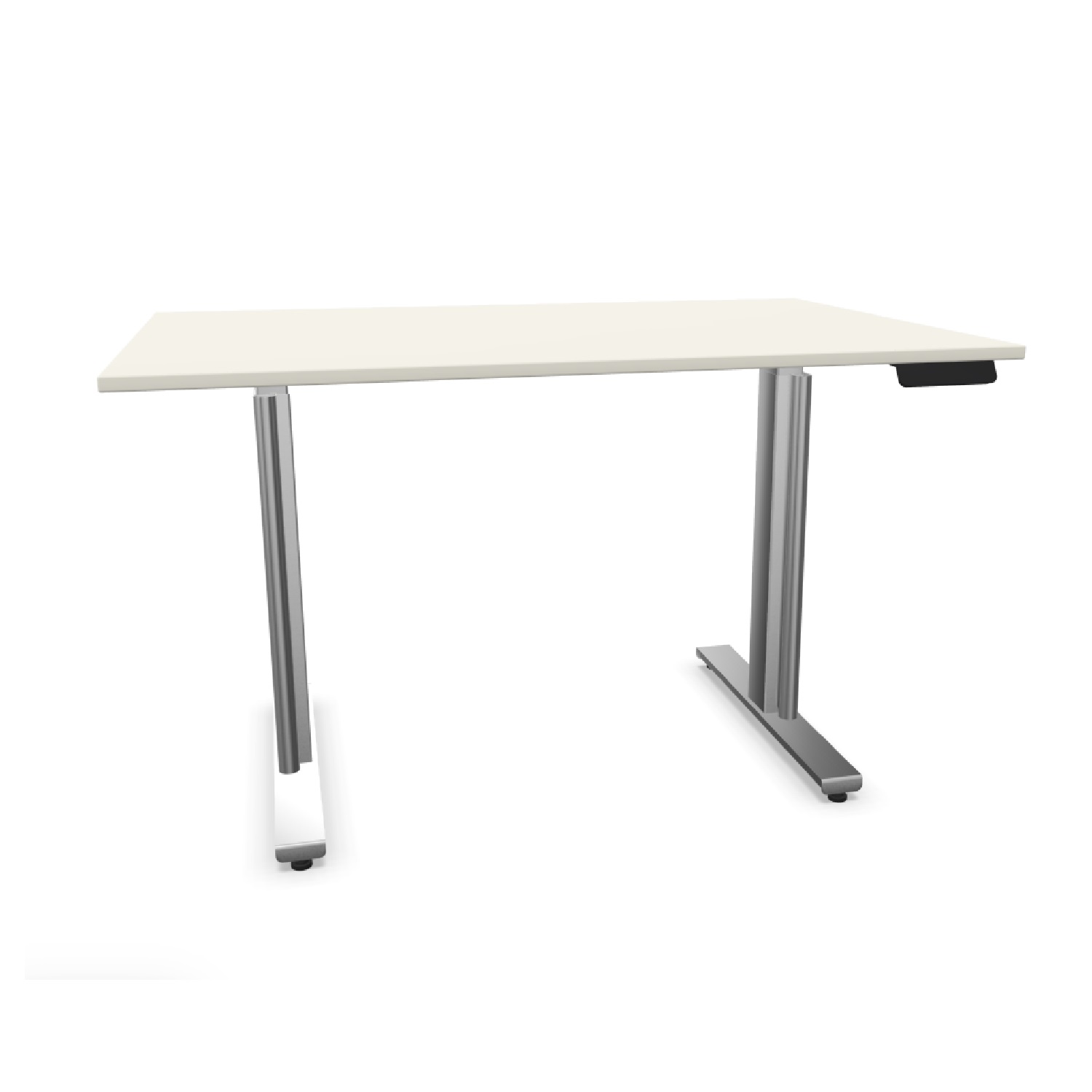 • massives silberfarbenes T-Fuß Gestell auf Stellfüßen