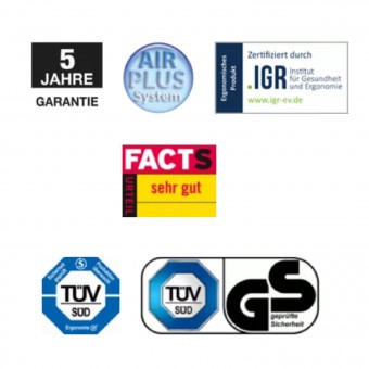 - Vollpolsterrückenlehne mit höhen- und tiefenverstellbarer Lordosenstütze (Air Plus)