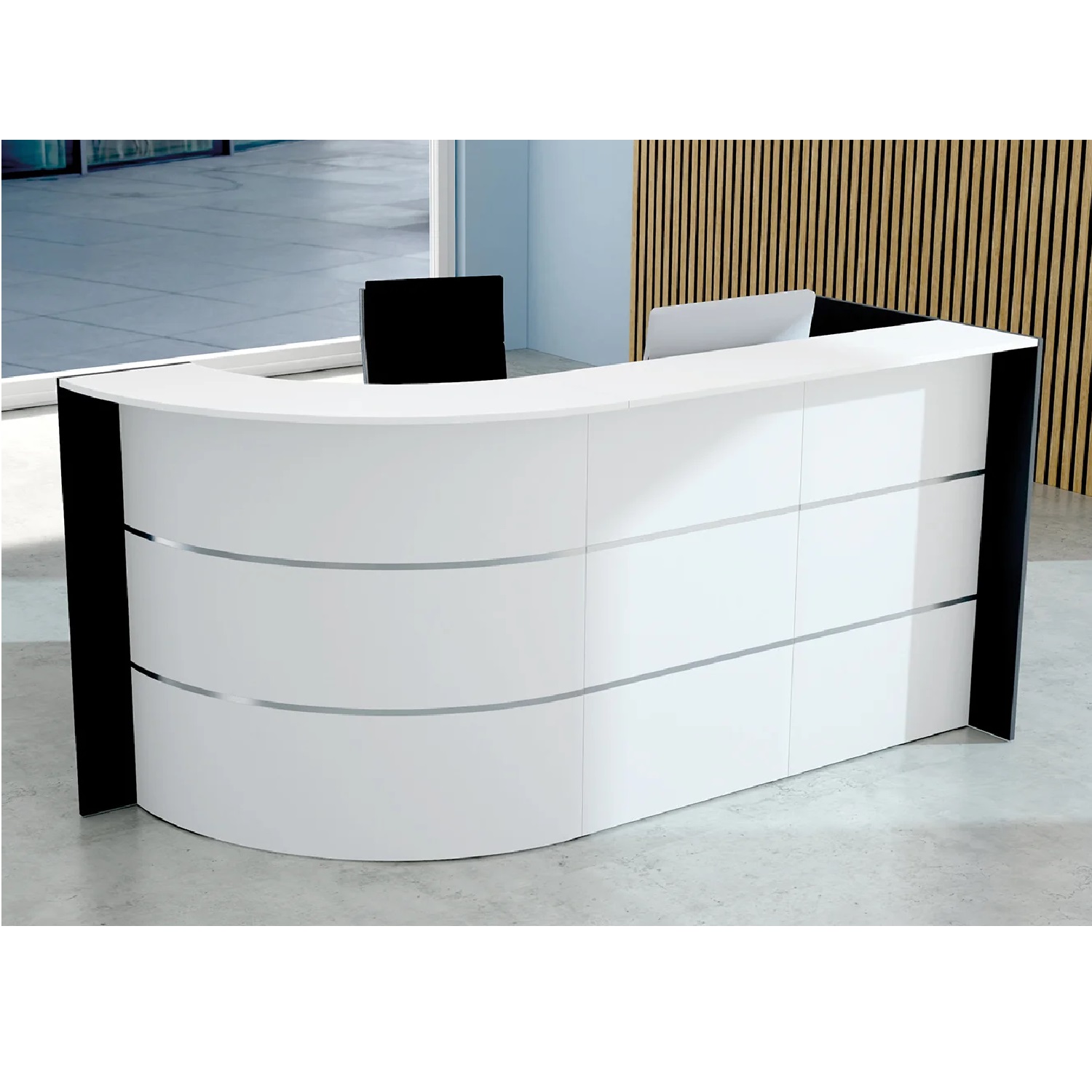 Die Tischplatte ist mit einem Motor ausgerüstet, der die Platte von 76 bis auf 105 cm hebt und senkt. Der Motor verfügt über einen Kollisionsschutz. Das Display an der Tischplattenvorderseite zeigt die jeweilige Höhe. Zudem lassen sich 4 Tischplattenhöhenspeichern. Für eine geordnete Kabelführung ist die Tischplatte mit Kabeldurchlässen ausgestattet. Die Thekenfront kann mit einer LED-Beleuchtung versehen werden (Zubehör).
