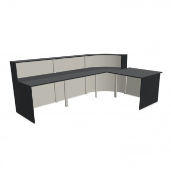 Die Theke Cento ist eine Stahl-/ Holzkonstruktion. Hinter den 110 cm hohen Fronten befindet sich ein vollwertiger Arbeitsplatz mit einer Tiefe von 80 cm und einer Höhe von 74 cm.