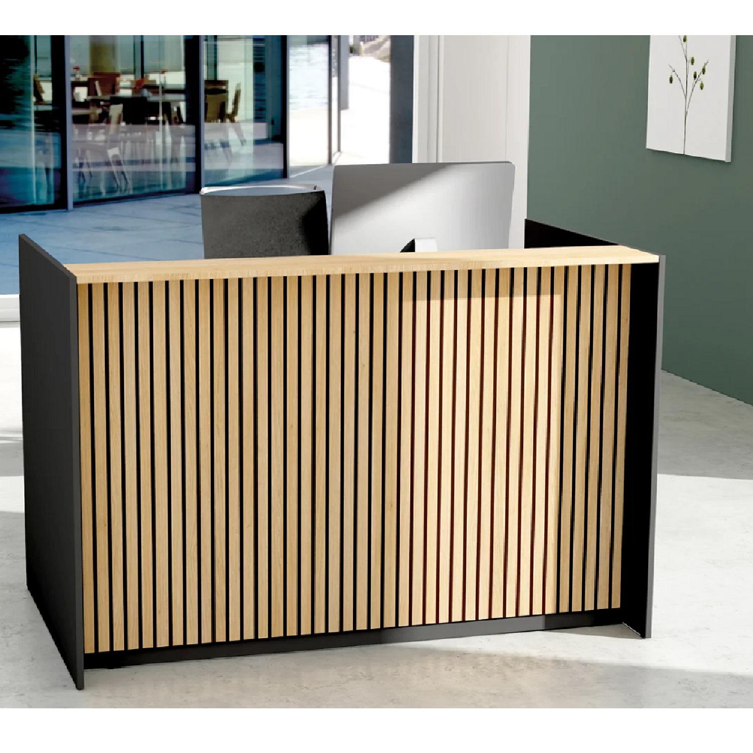 • Außerdem: Die Paneele an der Front ist mit einem Filzrücken versehen, der in Verbindung mit den Holzleisten in Eiche den Geräuschpegel senkt. Es handelt sich also um eine Akustik-Paneele.
