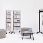 Die Barhocker und Poufs derselben Serie mit ihrem spielerischen Design passen perfekt zu den verschiedenen Tischhöhen: