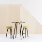 Die Barhocker und Poufs derselben Serie mit ihrem spielerischen Design passen perfekt zu den verschiedenen Tischhöhen: Beistelltisch mit 40cm Höhe, einen Arbeitstisch mit 75cm Höhe und einen Stehtisch mit einer Höhe von 105cm.
