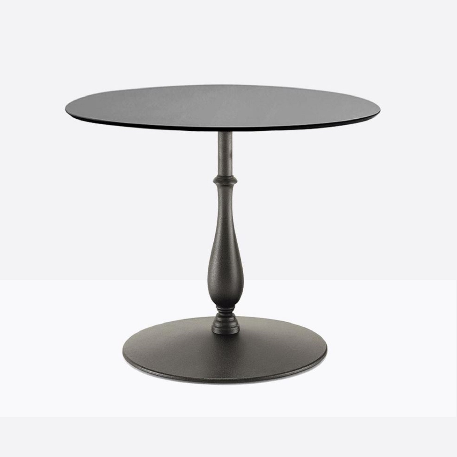 Jugendstil inspiriert ist. Tisch mit Basis und Säule aus sandgestrahltem