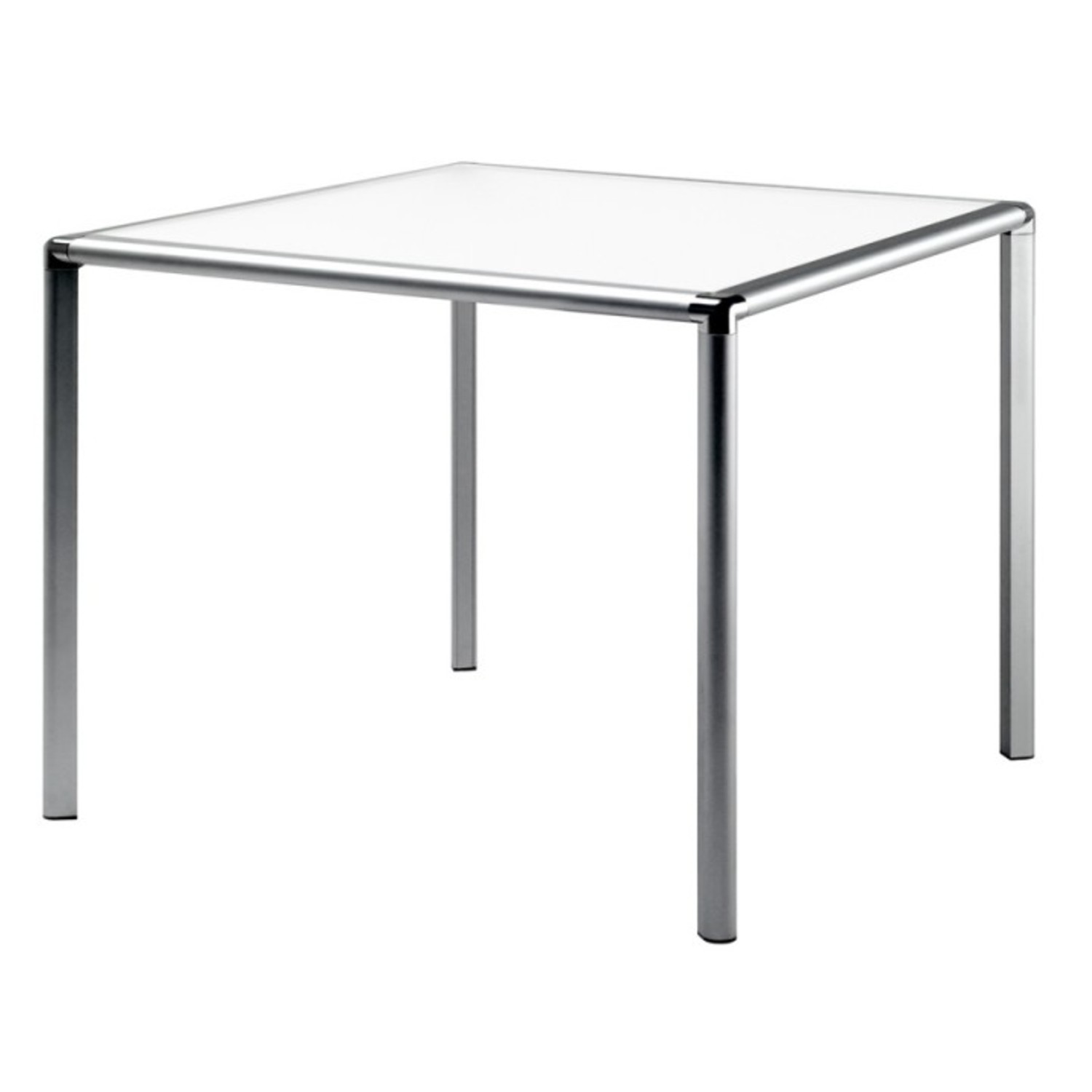 Der Rahmen des Tisches besteht aus stranggepresstem und poliertem Aluminium.