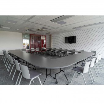 Ein Konferenztisch mit Klappplatte ist eine perfekte Lösung für kleine Büroräume. Dank der großen Auswahl an Farben und Modulen können verschiedene Konfigurationen erstellt und an zahlreiche Büro- oder Konferenzräume angepasst werden. Die Variante mit Rollen ist auch möglich, was die Mobilität des Tisches sicherlich verbessert. Die Möbel richten sich an Benutzer, die die Funktionalität und Ergonomie des Arbeitsplatzes schätzen.