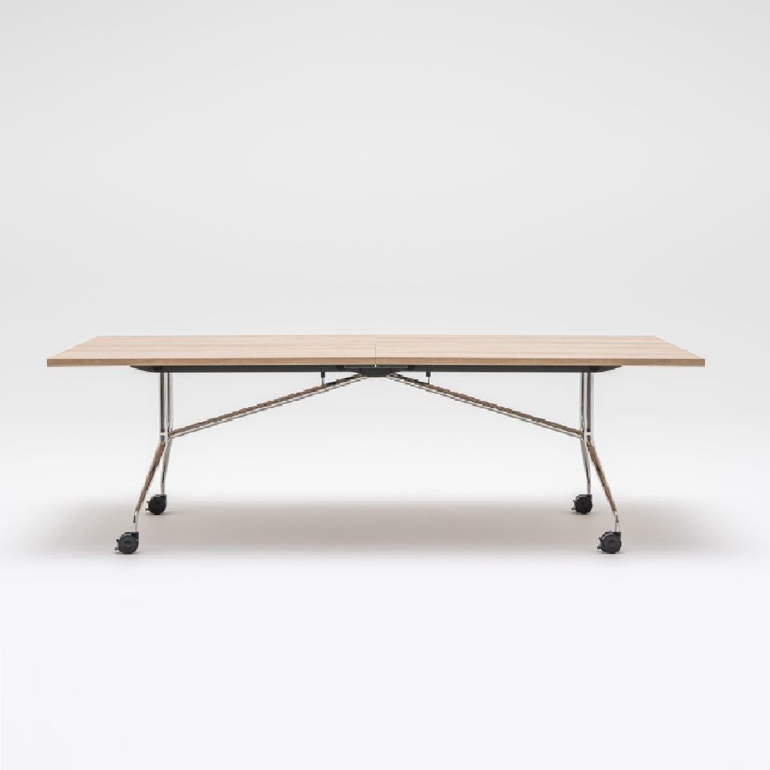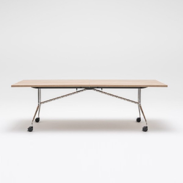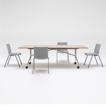 Plica ist ein kompakter Konferenztisch, der in zahlreichen Größen erhältlich ist. Der Tisch ermöglicht die Gestaltung eines ergonomischen Arbeitsplatzes während Besprechungen, Schulungen und Kongressen. Plica verfügt über einen Schutzmechanismus, der den Benutzer vor dem Einklemmen der Hand beim Ein- und Ausklappen des Tisches schützt. Beim Zusammenklappen des Tisches wird die Breite auf 40 Zentimeter verringert. Auf dieser Grund kann der Tisch leicht überall hin verschoben und auch in kleinen Räumen gestellt werden. Die Tischplatte ist in drei Formen erhältlich: rechteckig, rechteckig mit abgerundeten Ecken und tonnenförmig. Es gibt auch drei Arten von den Tischoberflächen: Melaminplatte, Nano-Tech-Fenix-Laminat, das eine hohe Kratz- und Abriebfestigkeit aufweist, sowie eine trocken abwischbare Platte, mit der Sie Notizen direkt auf dem Tisch erstellen oder als Tafel verwenden können.. Die sanften Farben des Tisches sorgen dafür, dass der Tisch zu jeder Anordnung passt, unabhängig vom Stil des Innenraums.