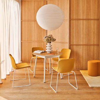 • Die runde Tischplatte erleichtert die Interaktion zwischen den Sitzenden;