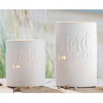 Die einzigartige Porzellanleuchte mit dem Schriftzug "Nordlicht" Höhe 28 cm