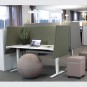 Leicht abgeschrägte Seitenwände werden per Reißverschluss mit einem geraden Frontpaneel kombiniert – ein Schreibtisch-Sichtschutz für ein dynamisches Arbeitsumfeld. Auch als Stellwand erhältlich.
