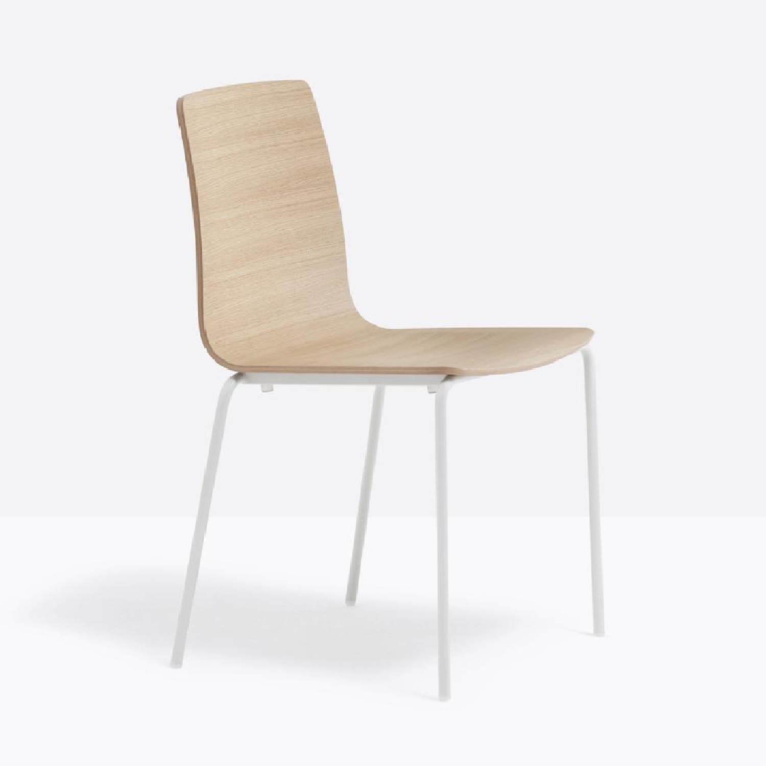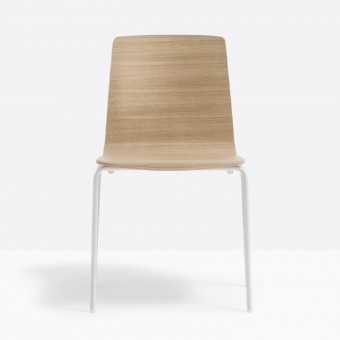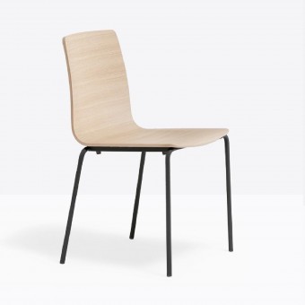 Inga erinnert mit ihren Namen an nordeuropäische weibliche Eleganz. Stuhl mit Sitzschale aus furniertem Eichenmultiplex und Struktur aus Stahlrohr Ø 16 mm.