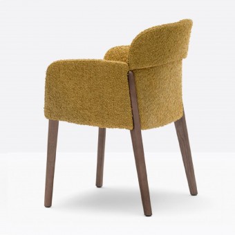 Opale ist ein Armlehnenstuhl mit einem fließenden, harmonischen Design, geprägt von weichen, organischen Formen.