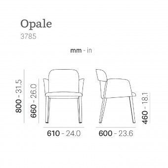 Das markanteste Merkmal von Opale ist ein funktionaler Griff, der in die Rückseite der Rückenlehne integriert ist. Er verschmilzt mit der Silhouette des Armlehnenstuhls und betont dessen dreidimensionale Formgebung.