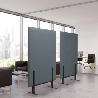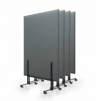 Die mit Snowsound-Technologie ausgestatteten Pli Over Trennwände sind in verschiedenen selbsttragenden Versionen oder mit Sockeln auf Rädern für größere Flexibilität und mühelose Verstellbarkeit im Raum verfügbar.