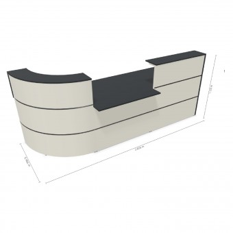 Die Theke Cento ist eine Stahl-/ Holzkonstruktion. Hinter den 110 cm hohen Fronten befindet sich ein vollwertiger Arbeitsplatz mit einer Tiefe von 80 cm und einer Höhe von 74 cm.