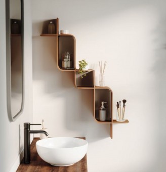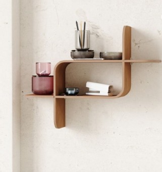 Montage ist ein aus naturbelassenem Bugholz gefertigtes Wandregal, das sich durch Wärme und weichen Linien auszeichnet