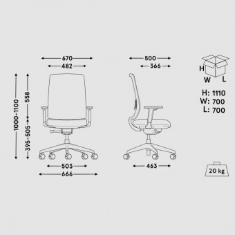 - Mechanismus Auto Synchro - mit Synchronmechanik und mit automatischer Einstellung von Druckkraft gegen den Rücken, gestaltet für Belastung von 45 bis 120 kg, ermöglicht die Neigung der Rückenlehne von 0° bis 20° bei gleichzeitiger Neigung des Sitzes in der Spanne von 0° bis 6°, Blockierung der Rückenlehne in 5 Positionen möglich;