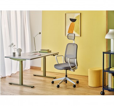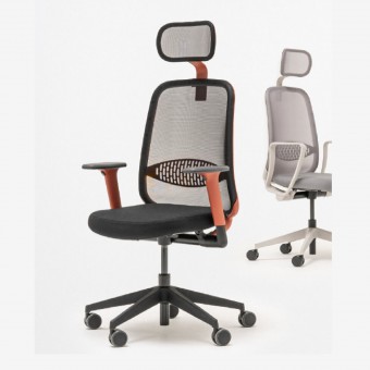 Der Bürostuhl ist die Grundlage eines komfortablen Arbeitsplatzes und Astro definiert Ergonomie und Ästhetik des Arbeitsbereiches neu. Ein charakteristisches Element seiner Konstruktion ist die Torsionsstange. Der Drehsitz mit Höhenverstellung und das Fußkreuz mit Rollen erleichtern das Bewegen um den Schreibtisch sowie das Aufstehen. Die durchbrochene Rückenlehne und die integrierte Lendenwirbelstütze sorgen für ergonomische Rückenunterstützung und Luftzirkulation, so dass man den ganzen Arbeitstag über bequem sitzen kann. Astro ermöglicht die Anpassung an die Bedürfnisse und Vorlieben des Benutzers und fördert eine dynamische Sitzposition.