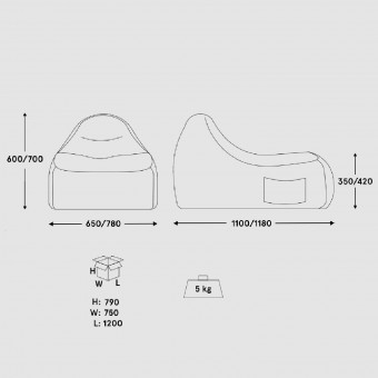 - Sitz – gefüllt mit Styroporgranulat, gepolstert