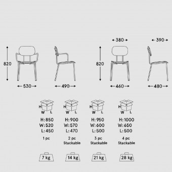 • Das traditionelle 4-Bein-Gestell ist vom klassischen Schulstuhl inspiriert;