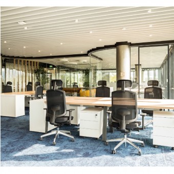 • Das Fünfstern-Drehgestell mit Rollen ermöglicht eine dynamische Sitzposition und erleichtert das Aufstehen und Bewegen am Schreibtisch;