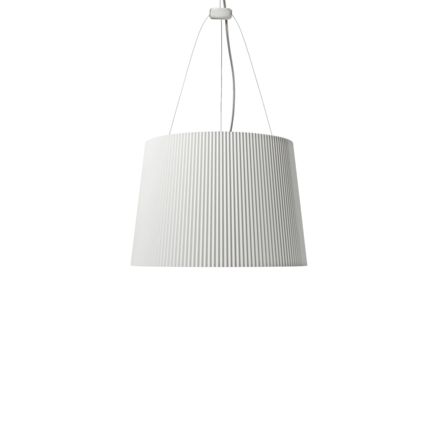 Gè ist eine Hängeleuchte, die mit einer Deckenrose aus dekoriertem Polycarbonat befestigt wird und deren Form an antike Leuchter aus Muranoglas erinnert.