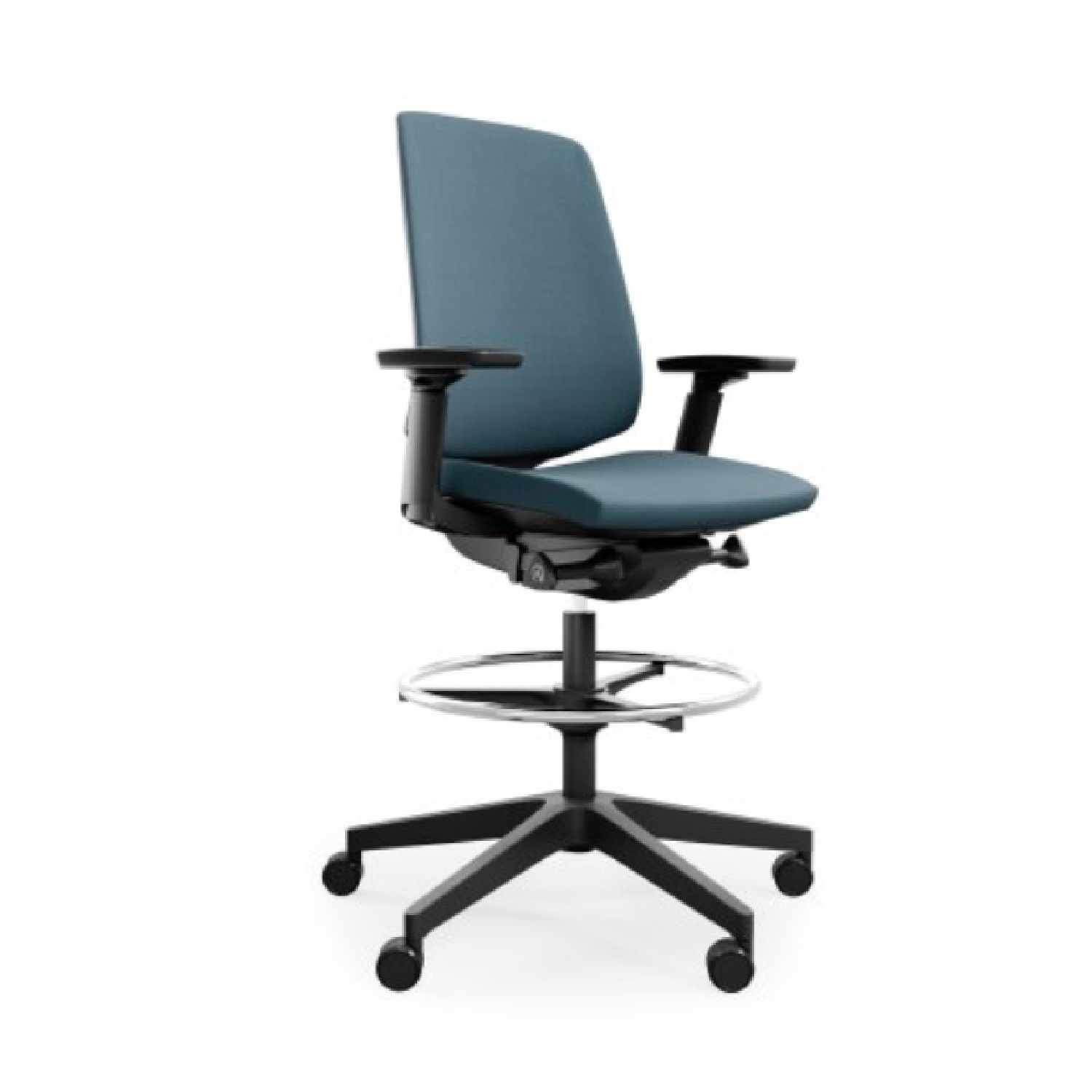 • Counterstuhl mit Fußstütze, gepolsterte Rückenlehne,