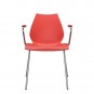 Die Schale des Stuhls Maui, die gleichzeitig Sitz und Rückenlehne bildet, ist in einem Stück aus Polypropylen gefertigt. Der Rahmen besteht aus verchromtem Stahl.