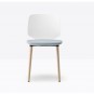 Stuhl mit Sitzschale aus Technopolymer und gepolsterter Sitzfläche, Gestell aus Aluminium-Druckguss und Beinen aus massivem Eschenholz.