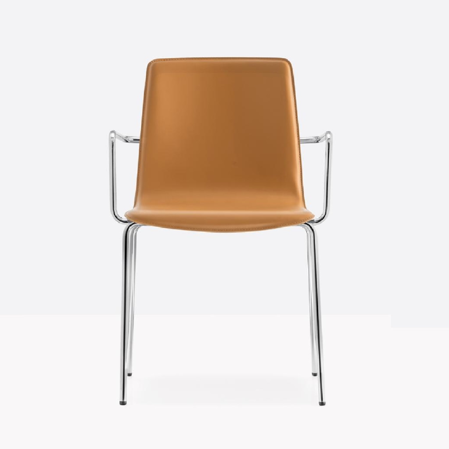 Inga erinnert mit ihren Namen an nordeuropäische weibliche Eleganz. Armlehn-Stuhl mit Sitzschale aus natürlichem oder regeneriertem Kernleder und Struktur aus Stahlrohr Ø 16 mm.