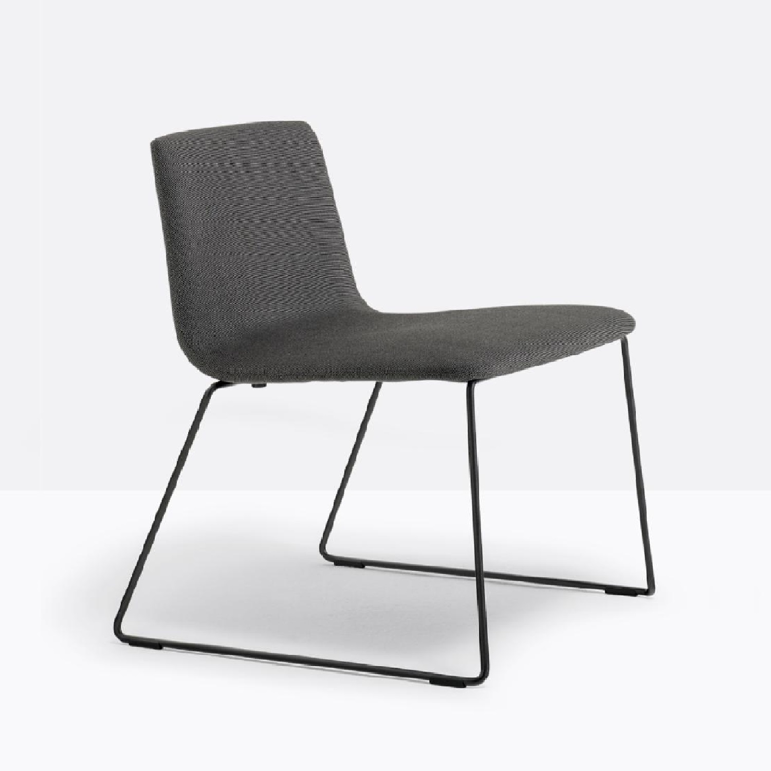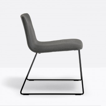 Inga erinnert mit ihren Namen an nordeuropäische weibliche Eleganz. Lounge-Stuhl mit gepolsterter Sitzschale bezogen mit Stoff oder Kunstleder und Kufengestell aus Stahlrohr Ø 11 mm.