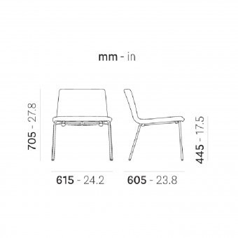 Inga erinnert mit ihren Namen an nordeuropäische weibliche Eleganz. Lounge-Stuhl mit gepolsterter Sitzschale bezogen mit Stoff oder Kunstleder und Struktur aus Stahlrohr Ø 16 mm.