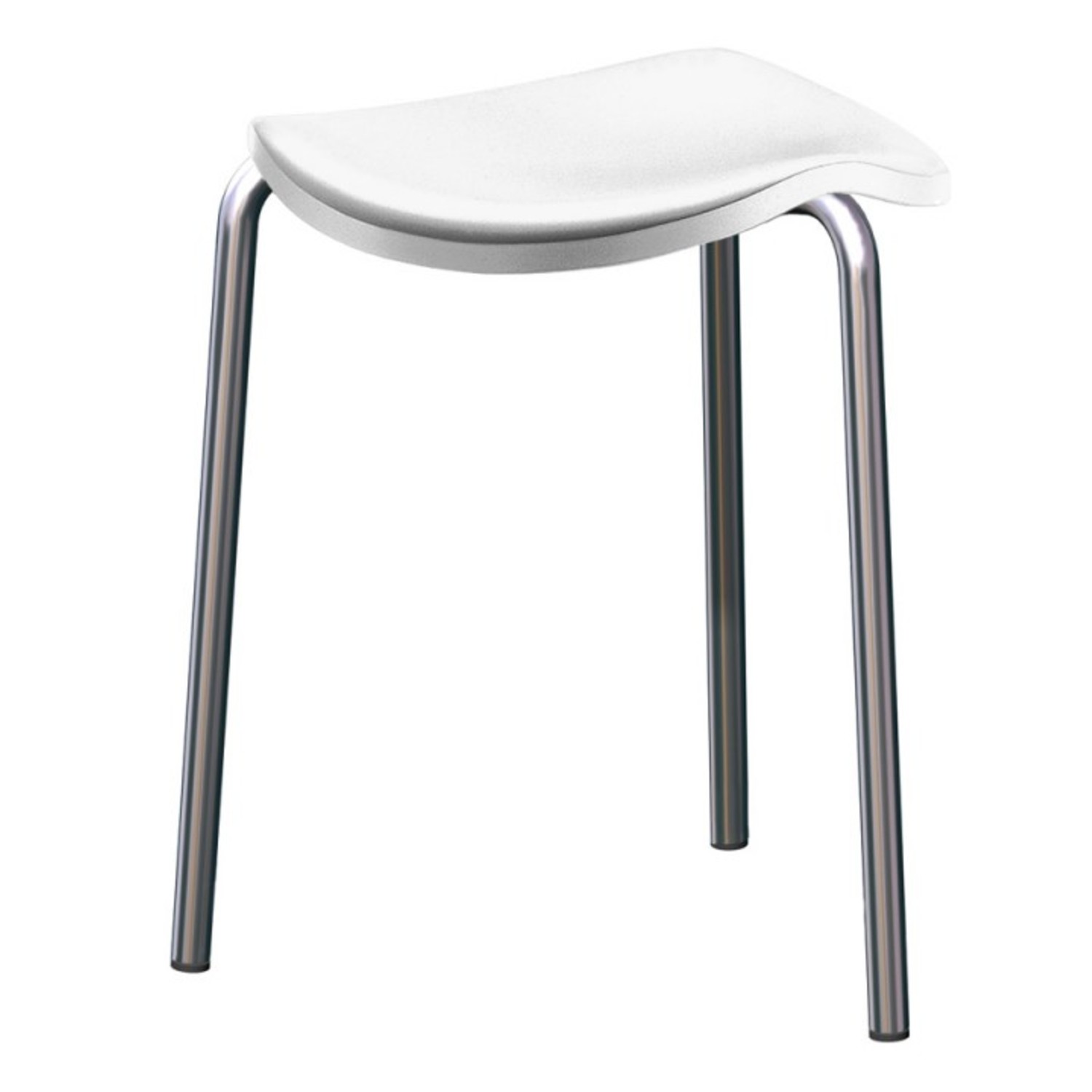 Dank verchromtem Gestell und robuster Sitzschale aus technischem Polymer eignet sich Well auch für den Einsatz im Badezimmer – zum Beispiel als Sitzgelegenheit beim Haare föhnen.