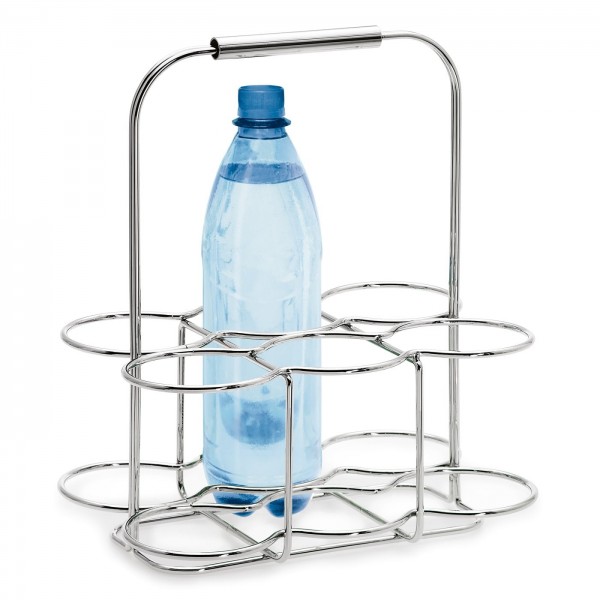 Sechs Flaschen können problemlos in dem Flaschenkorb aus verchromtem Metalldraht transportiert werden.